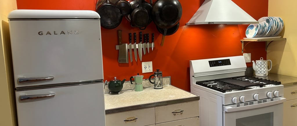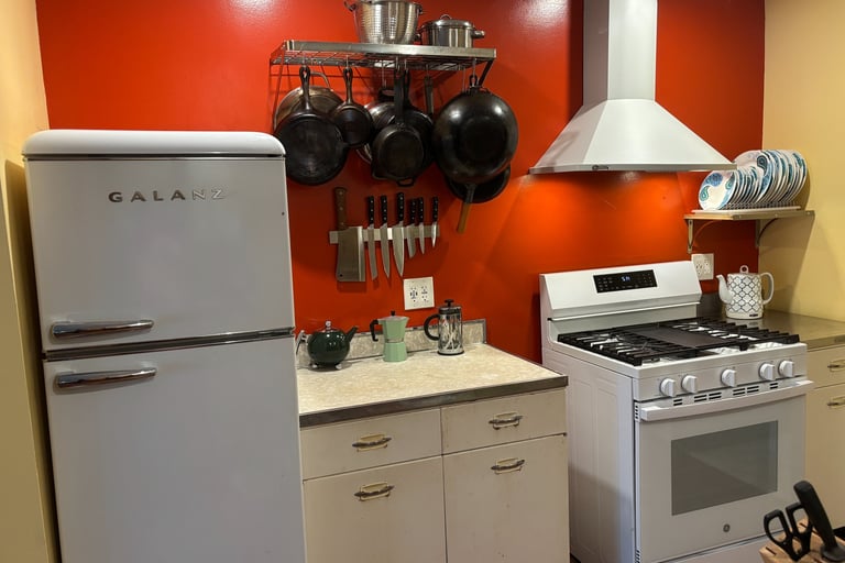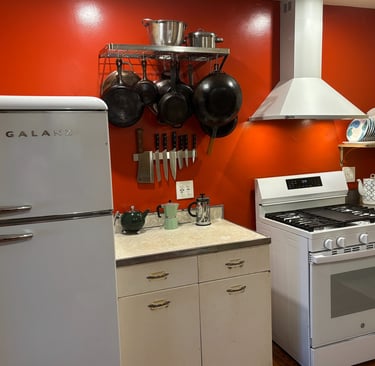 This is a quick rundown of a kitchen exhaust fan installation. After explaining that the existing outlet would need to be moved, we agreed to put a pop of color in the kitchen with an orange accent wall.