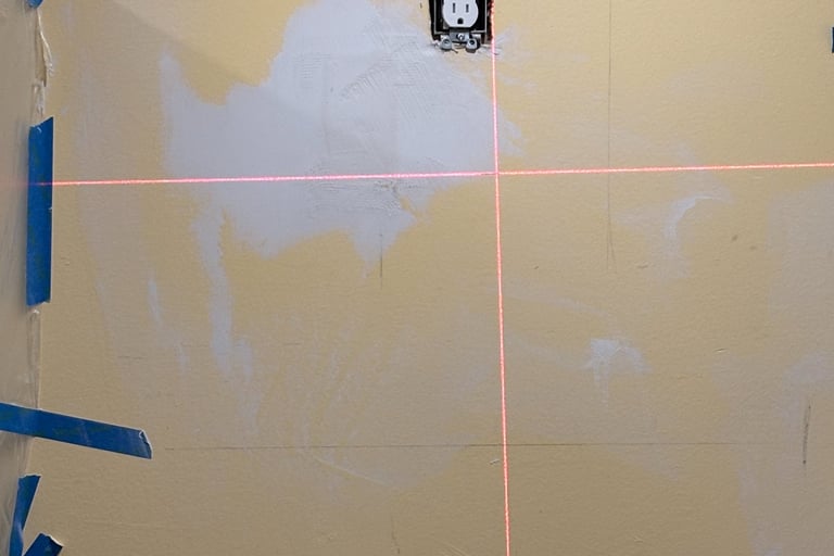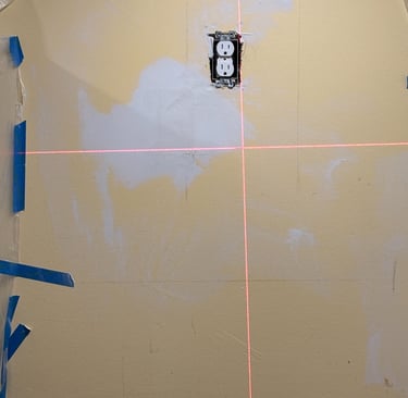 I pulled out my trusty laser level to make sure i centered the fan and especially the chimney above the stove.