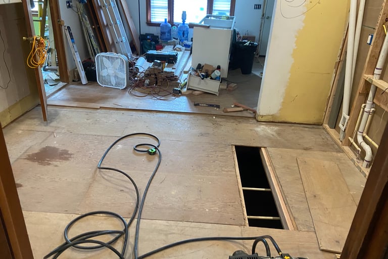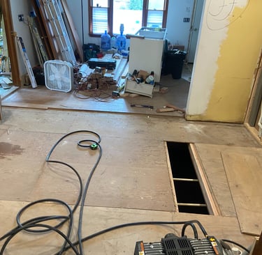 Here is a job where we had ripped up some old Linoleum flooring. I started with some rotten flooring in this kitchen.