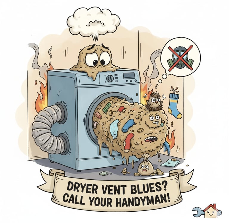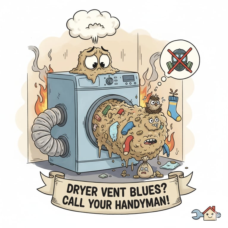 Essential home maintenance guide on dryer vent cleaning for fire prevention and efficiency. A clogged vent increases the risk of dryer fires, causes carbon monoxide backup in gas dryers, and drastically increases utility bills. Learn the how Salisbury Handyman, Llc can help keep your appliance safe and save money annually.